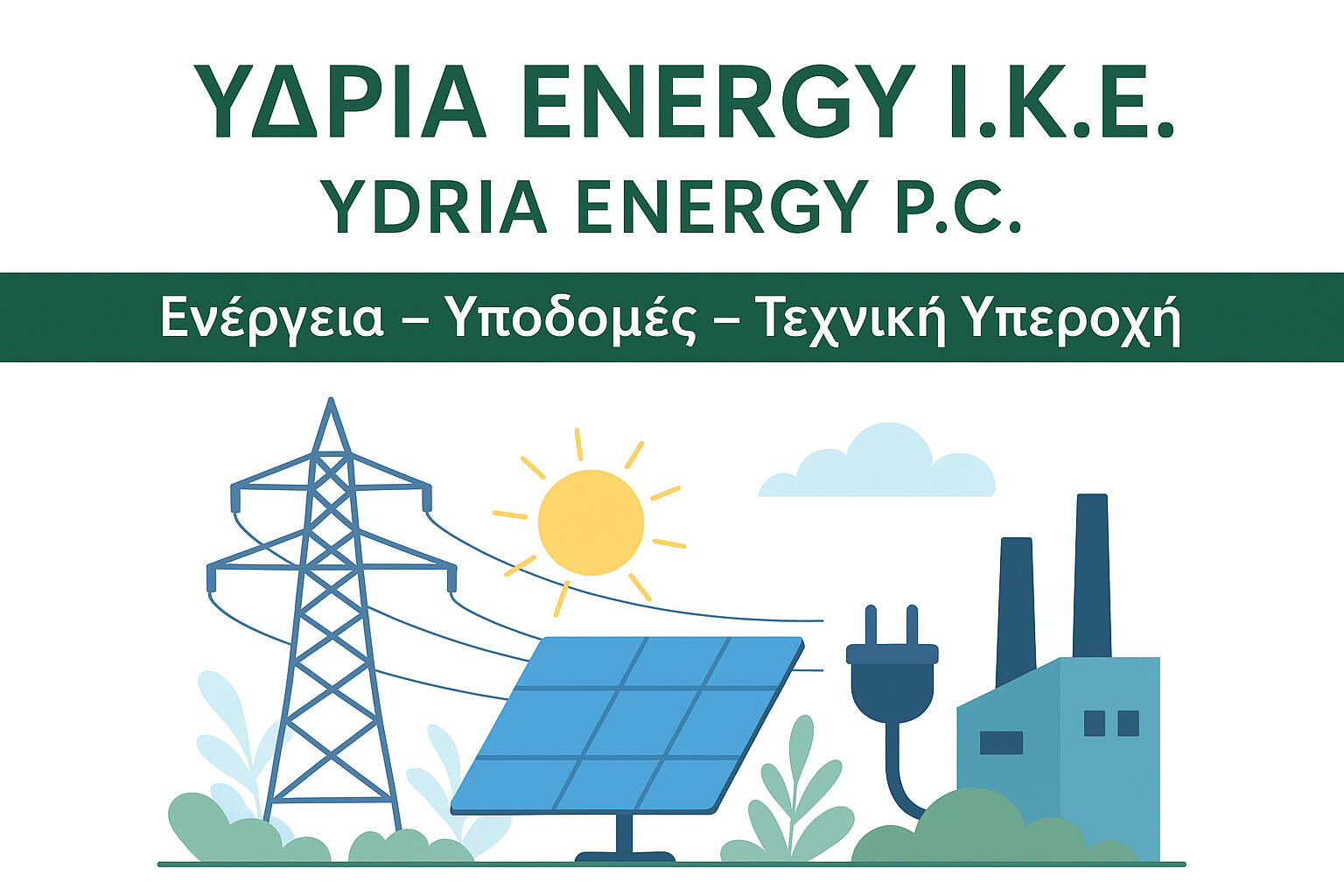 Η ΥΔΡΙΑ ENERGY I.K.E. (YDRIA ENERGY P.C.) είναι μία σύγχρονη τεχνική και ενεργειακή εταιρεία με έδρα τον Δήμο Δομοκού Φθιώτιδας. Δραστηριοποιούμαστε δυναμικά στους τομείς της μελέτης, κατασκευής και συντήρησης έργων ηλεκτροπαραγωγής, φωτοβολταϊκών εγκαταστάσεων, ηλεκτρολογικών έργων, καθώς και έργων πολιτικού μηχανικού.Στόχος μας είναι η παροχή καινοτόμων ενεργειακών λύσεων που συμβάλλουν στη βιώσιμη ανάπτυξη, τη βελτίωση της ενεργειακής αποδοτικότητας και την αξιοποίηση των ανανεώσιμων πηγών ενέργειας.